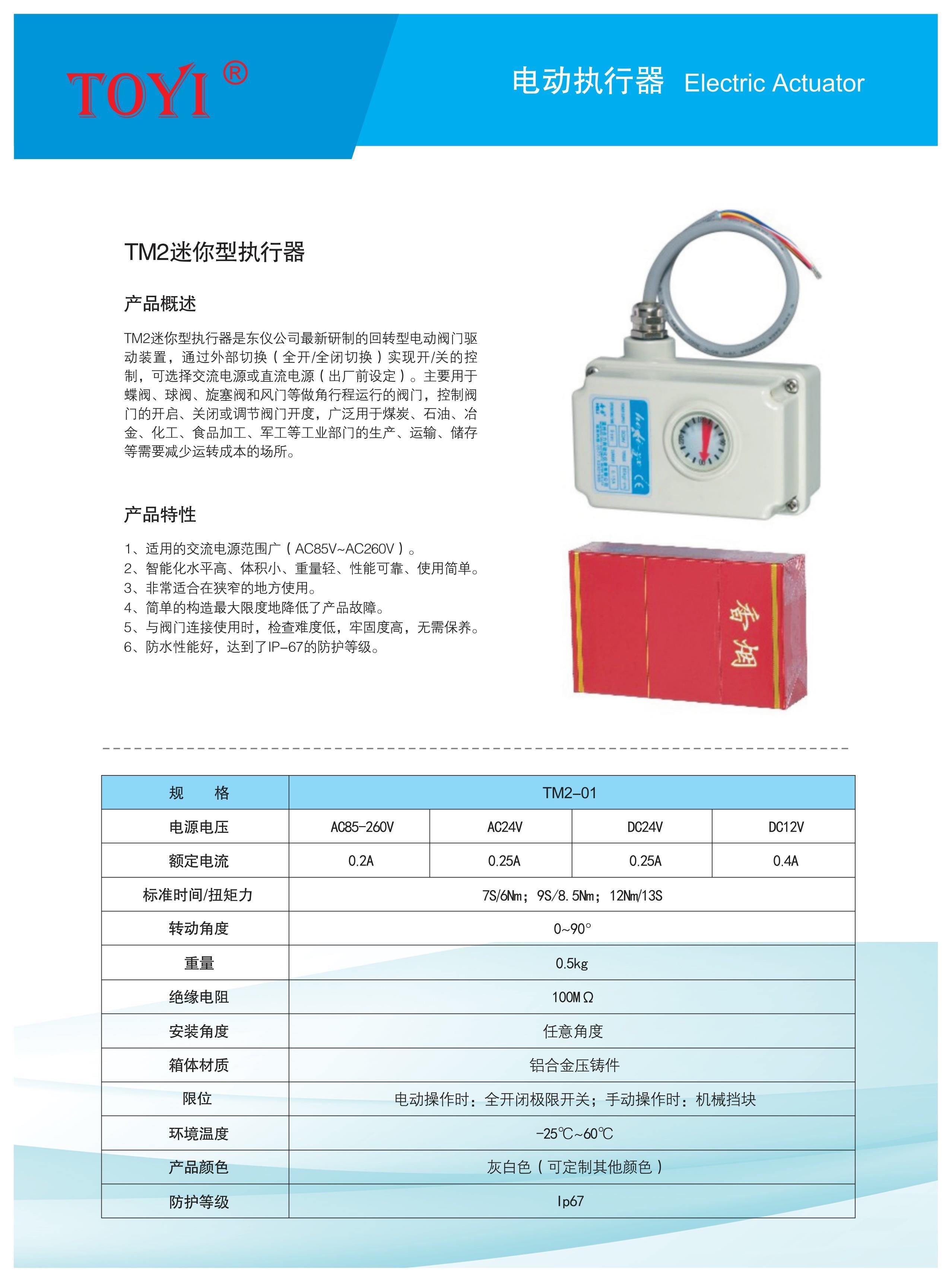 The TM2 mini actuator is the latest rotary electric valve driving device developed by Dongyi Company